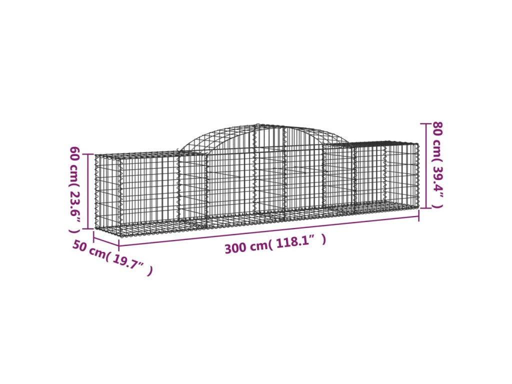 vidaXL Klenuté gabionové koše 30 ks 300x50x60/80 cm pozinkované železo
