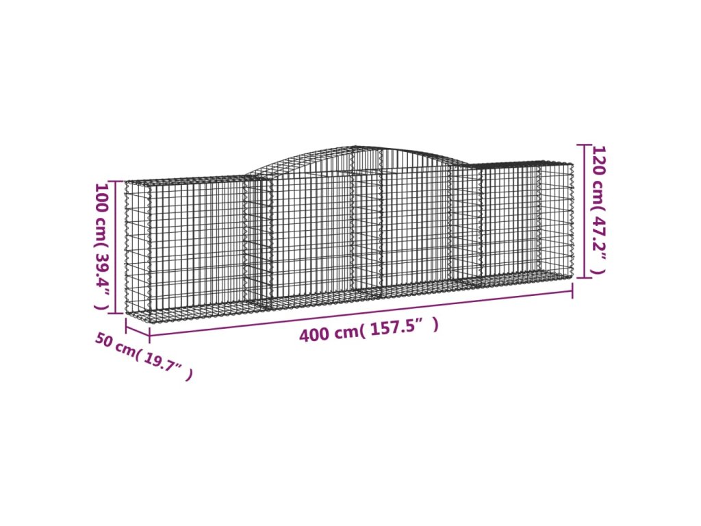 vidaXL Klenuté gabionové koše 4 ks 400x50x100/120cm pozinkované železo