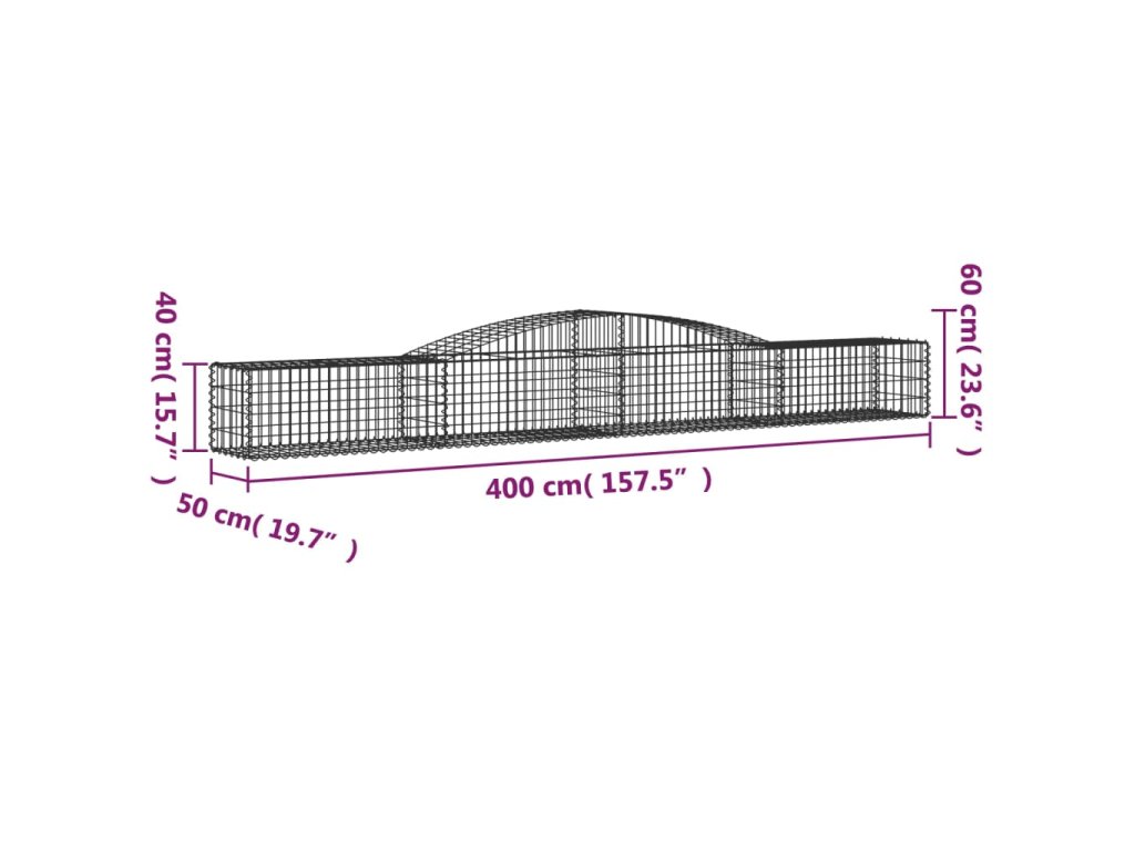 vidaXL Klenuté gabionové koše 4 ks 400x50x40/60 cm pozinkované železo