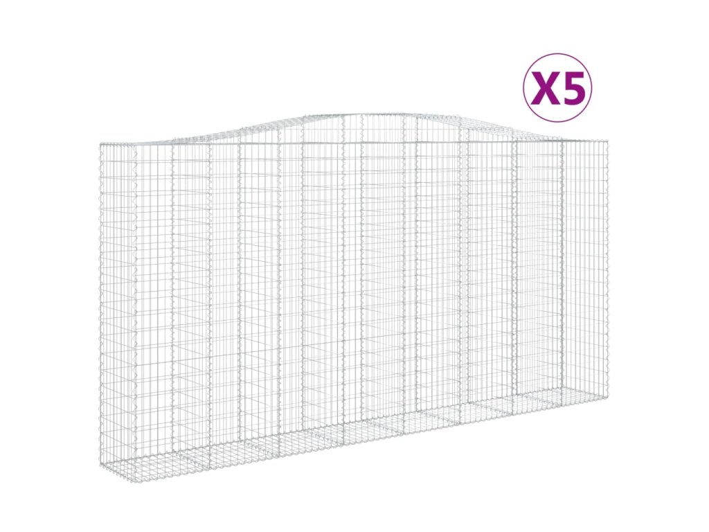 vidaXL Klenuté gabionové koše 5 ks 400x50x200/220cm pozinkované železo