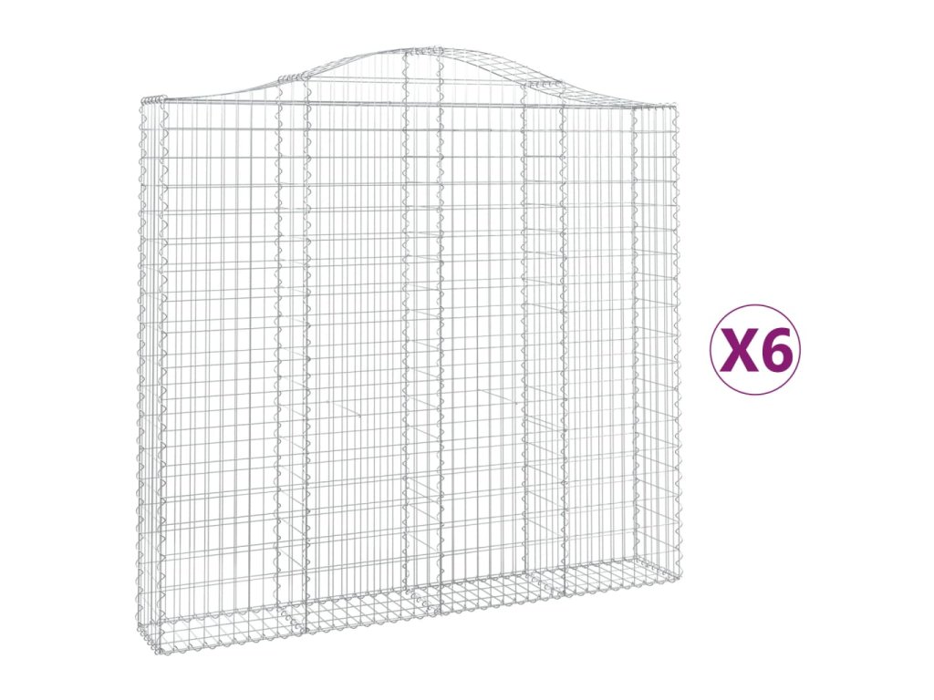vidaXL Klenuté gabionové koše 6 ks 200x30x180/200cm pozinkované železo