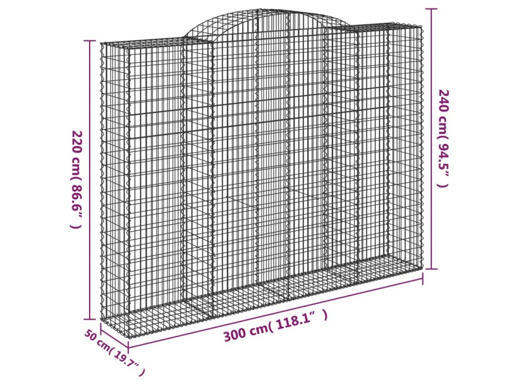 vidaXL Klenuté gabionové koše 6 ks 300x50x220/240cm pozinkované železo