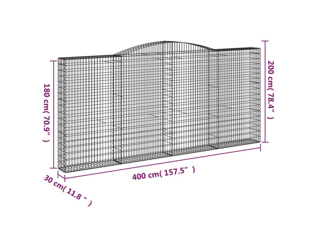 vidaXL Klenuté gabionové koše 6 ks 400x30x180/200cm pozinkované železo