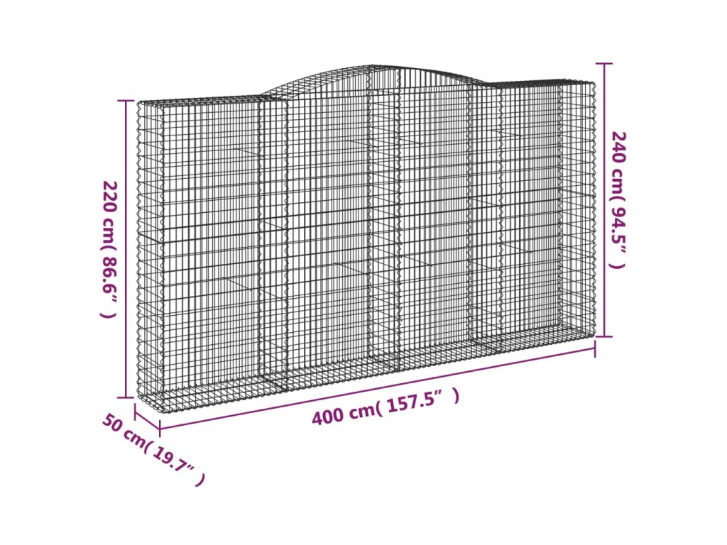 vidaXL Klenuté gabionové koše 7 ks 400x50x220/240cm pozinkované železo