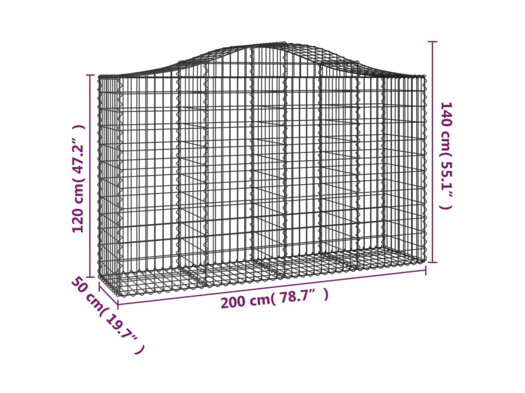 vidaXL Klenuté gabionové koše 8 ks 200x50x120/140cm pozinkované železo