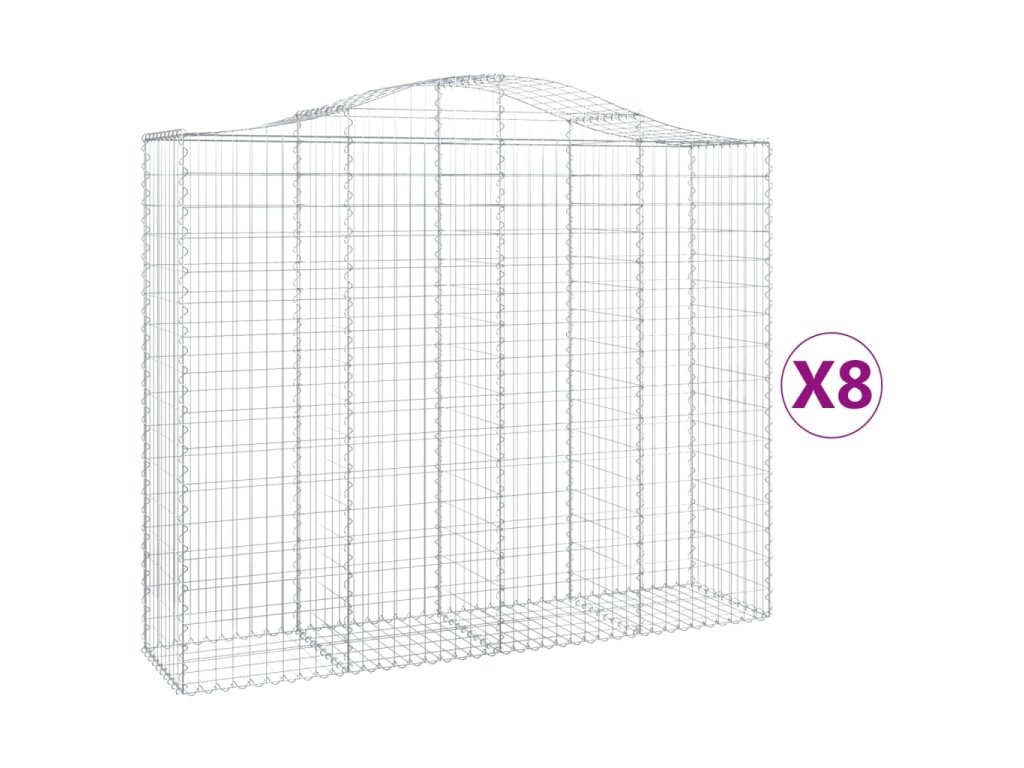 vidaXL Klenuté gabionové koše 8 ks 200x50x160/180cm pozinkované železo