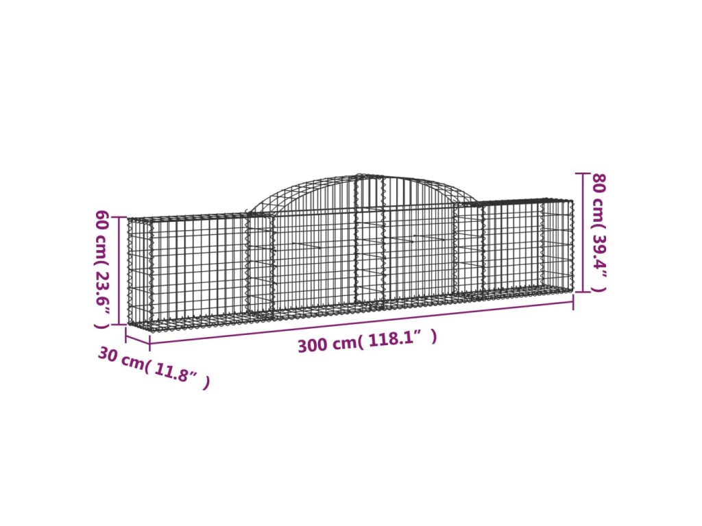 vidaXL Klenuté gabionové koše 8 ks 300x30x60/80 cm pozinkované železo