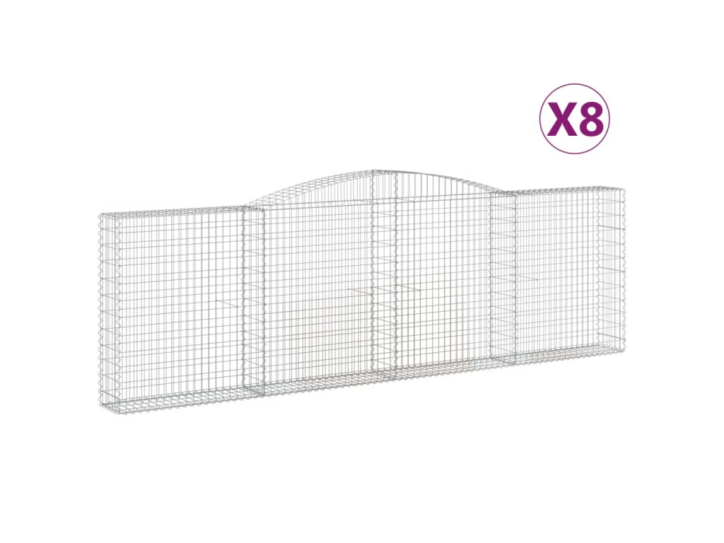 vidaXL Klenuté gabionové koše 8 ks 400x30x120/140cm pozinkované železo