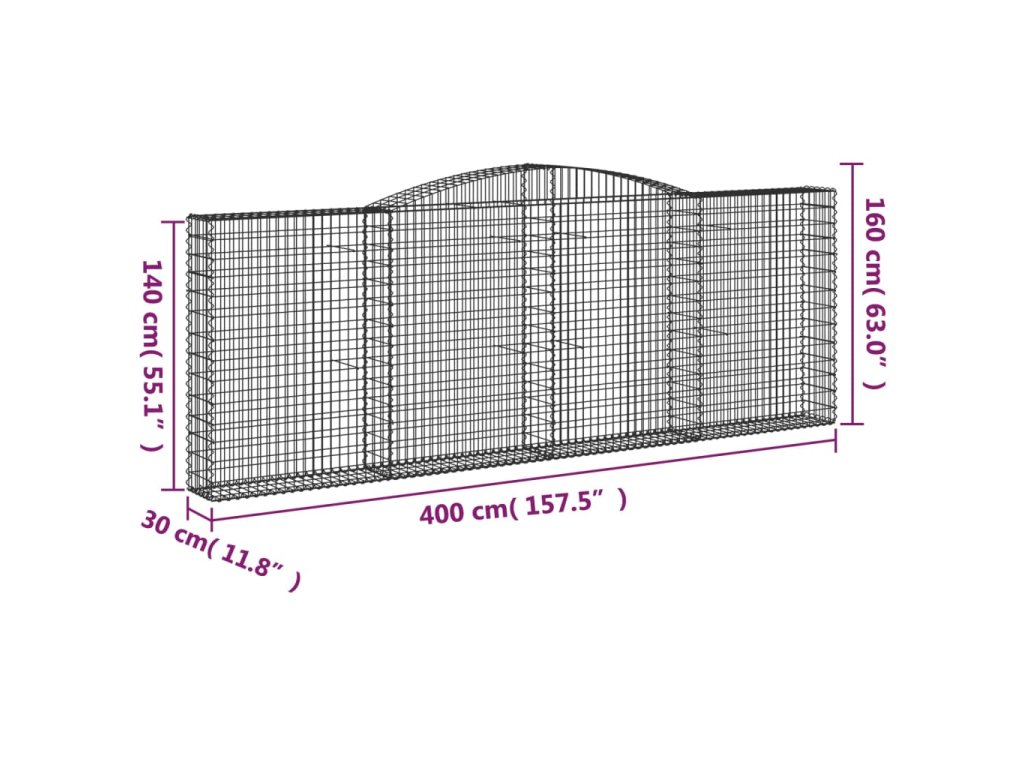 vidaXL Klenuté gabionové koše 8 ks 400x30x140/160cm pozinkované železo