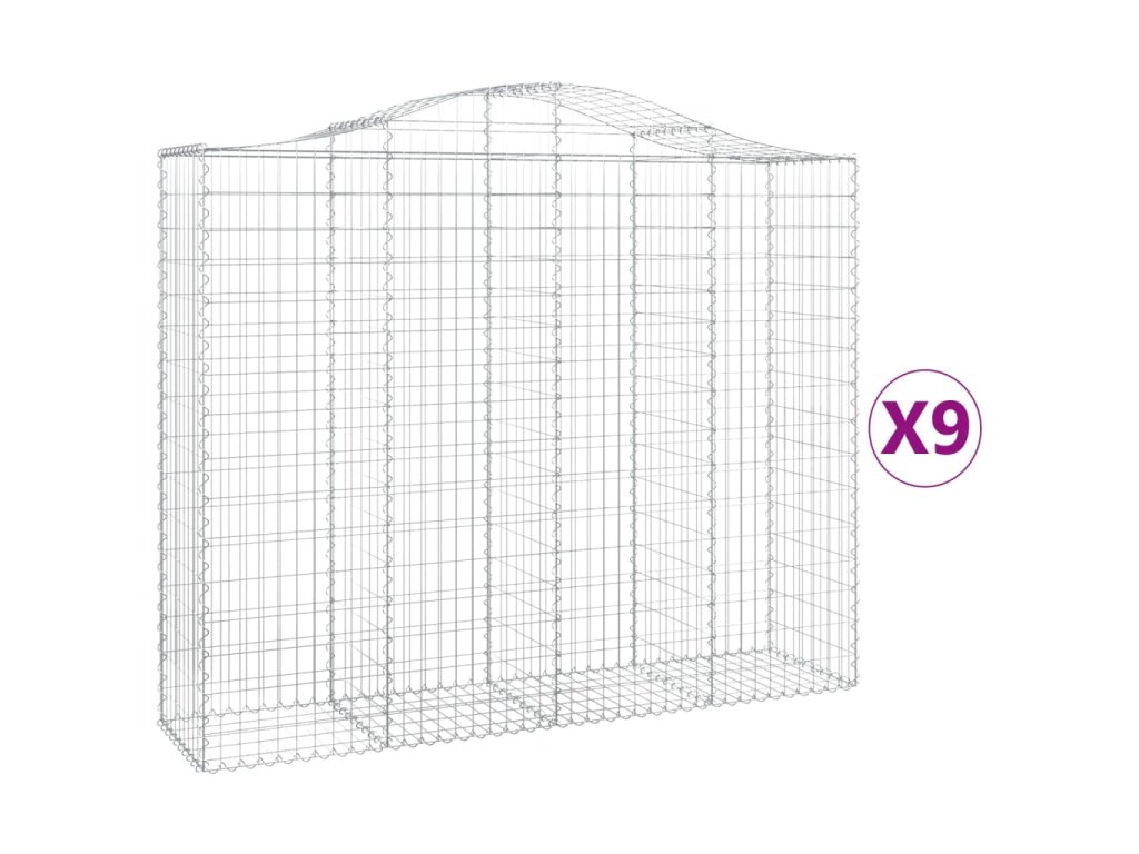 vidaXL Klenuté gabionové koše 9 ks 200x50x160/180cm pozinkované železo