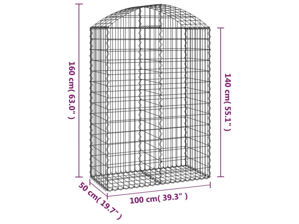 vidaXL Klenutý gabionový koš 100 x 50 x 140/160 cm pozinkované železo