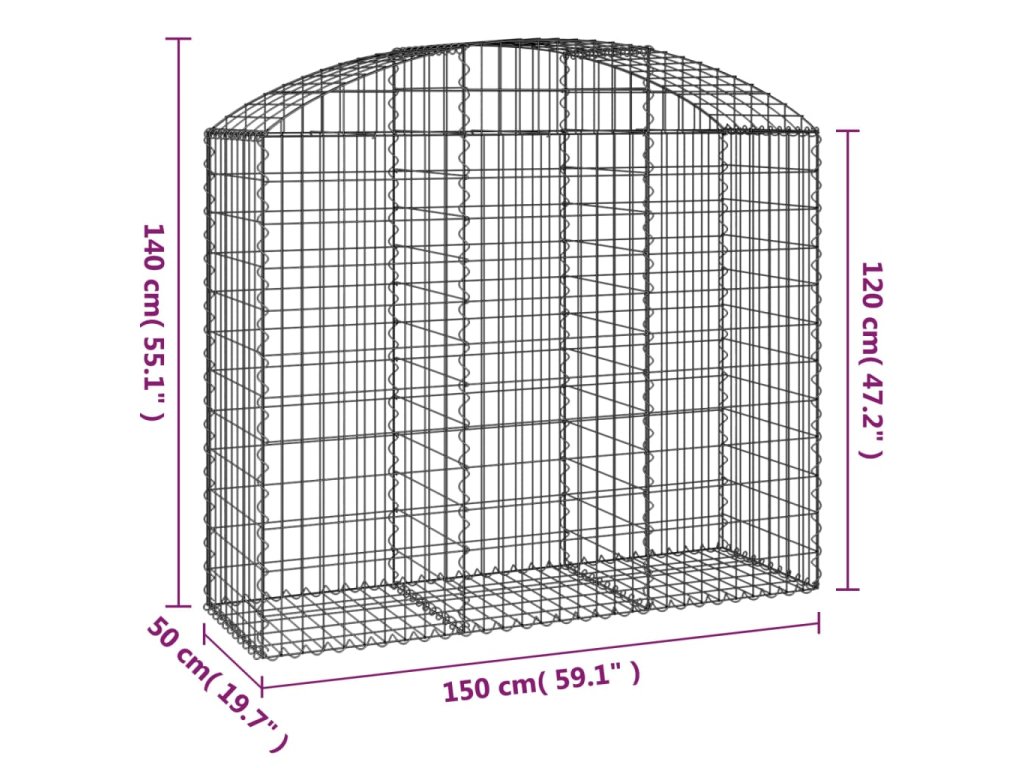 vidaXL Klenutý gabionový koš 150 x 50 x 120/140 cm pozinkované železo