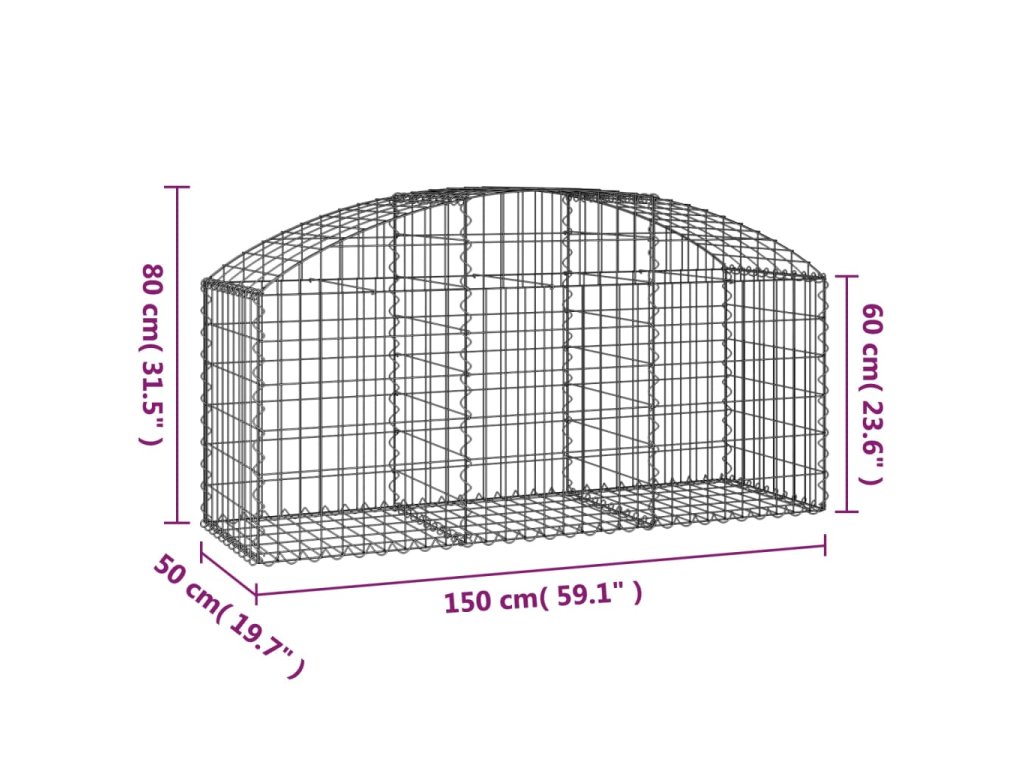 vidaXL Klenutý gabionový koš 150 x 50 x 60/80 cm pozinkované železo