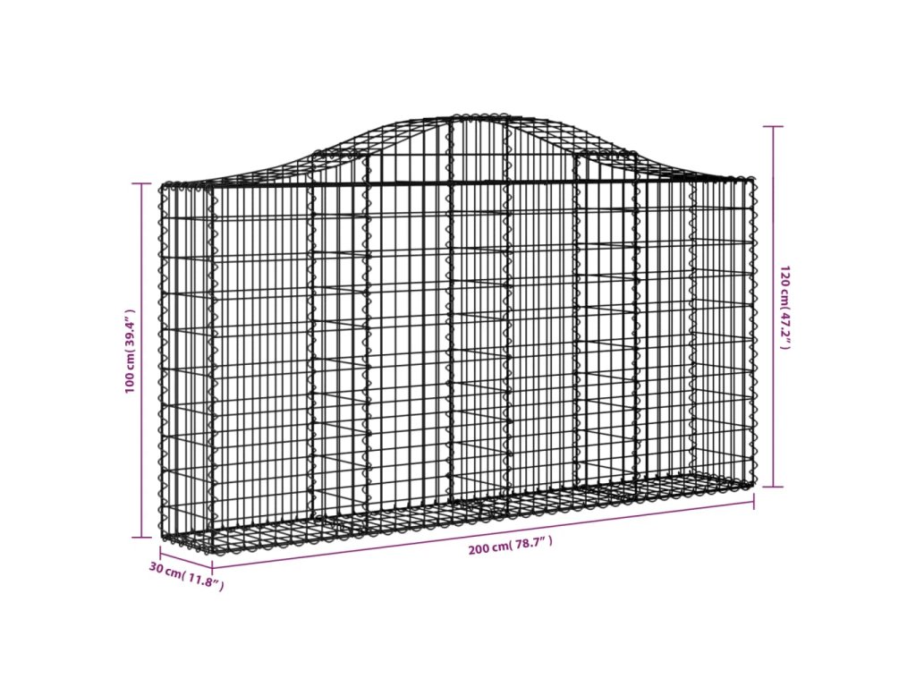 vidaXL Klenutý gabionový koš 200 x 30 x 100/120 cm pozinkované železo