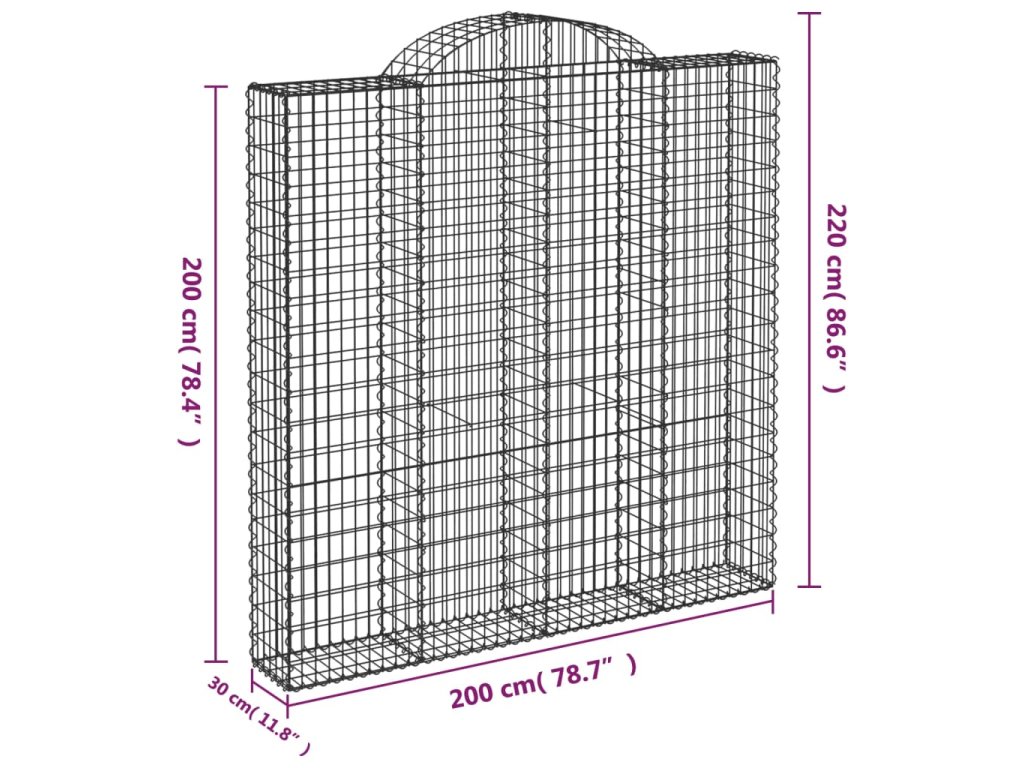 vidaXL Klenutý gabionový koš 200 x 30 x 200/220 cm pozinkované železo