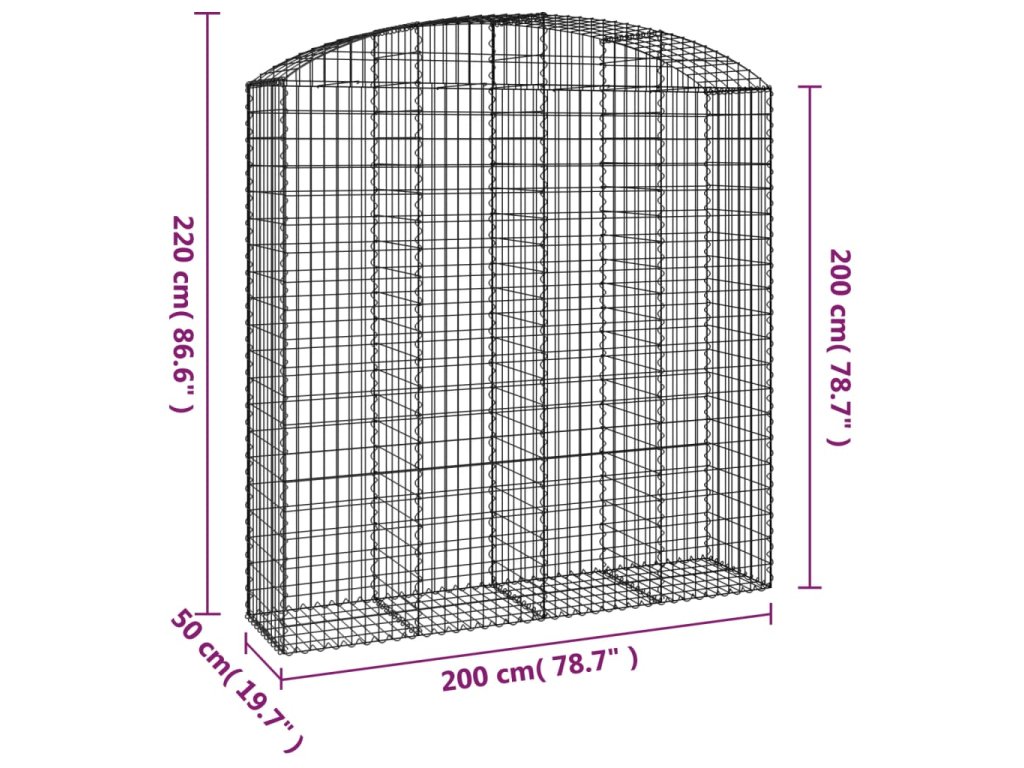 vidaXL Klenutý gabionový koš 200 x 50 x 200/220 cm pozinkované železo