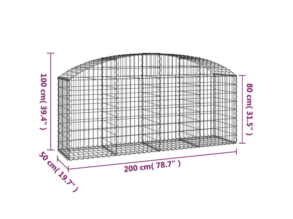 vidaXL Klenutý gabionový koš 200 x 50 x 80/100 cm pozinkované železo