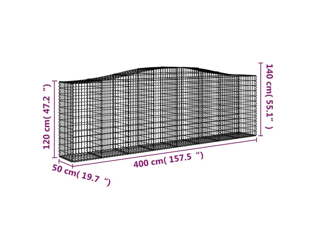 vidaXL Klenutý gabionový koš 400 x 50 x 120/140 cm pozinkované železo