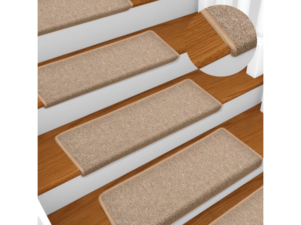 vidaXL Kobercové nášlapy na schody 15 ks 65 x 25 cm světle hnědé