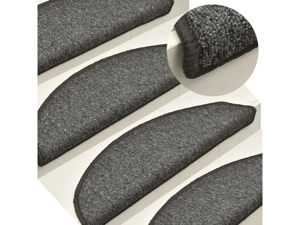 vidaXL Kobercové nášlapy na schody 15 ks tmavě šedé 56 x 17 x 3 cm