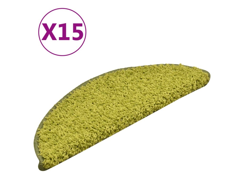 vidaXL Kobercové nášlapy na schody 15 ks zelené 56 x 17 x 3 cm