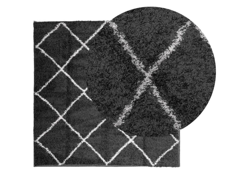 vidaXL Koberec s vysokým vlasem moderní černý a krémový 120x120 cm