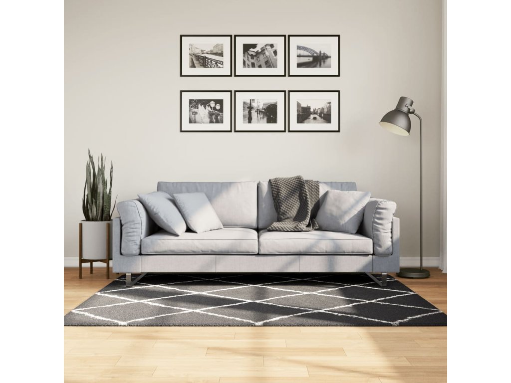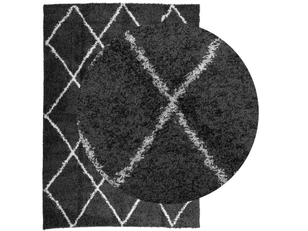 vidaXL Koberec s vysokým vlasem moderní černý a krémový 120x170 cm