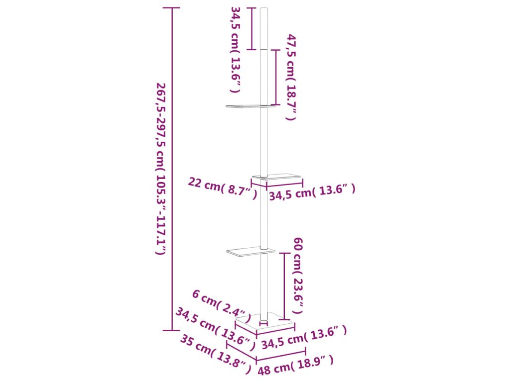 vidaXL Kočičí strom ke stropu světle šedý 267,5–297,5 cm