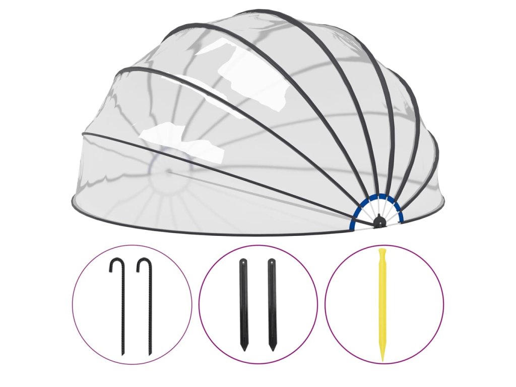 Kryt na bazén je vyrobený z PVC UPF 30 a má konstrukci ze sklolaminátu, poskytne tedy dokonalou ochranu před sluncem a deštěm. Zabrání také, aby do bazénu zvenku pronikly nečistoty, jako je listí, hmyz a prach. Pokud je to nutné, zaručí také rychlejší ohřev vody a sníží tepelné ztráty během noci. Kopule s unikátním systémem se závěsy se snadno otvírá a zavírá. A jelikož je transparentní, umožňuje dobrý výhled po okolí bazénu. K pevnému ukotvení kopule do země se dodávají zemní hroty a kotvicí háky do země. Nemusíte se tedy obávat, že kopuli bazénu odnese vítr.