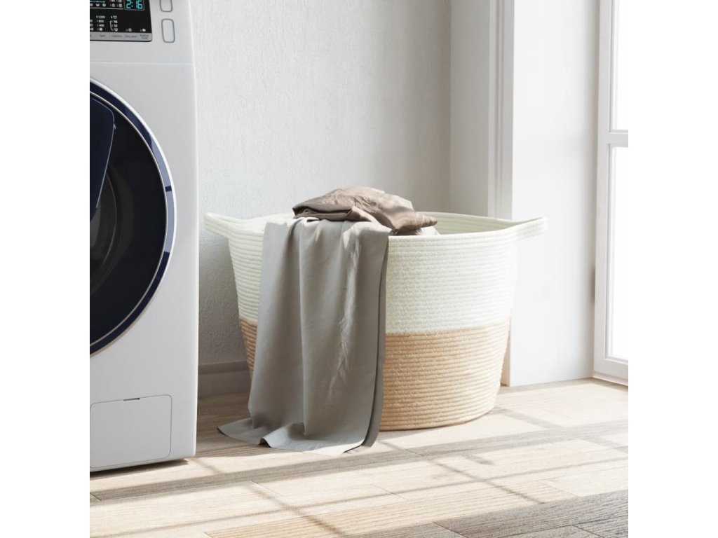 vidaXL Koš na prádlo béžový a bílý O 60 x 36 cm bavlna
