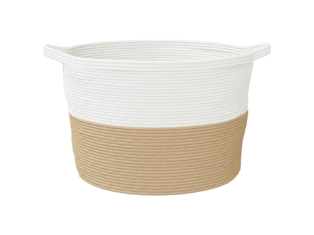 - Odolný materiál: Úložný koš je vyroben z tkaných bavlněných provazů, které vynikají svou prodyšností, měkkostí a výjimečnou odolností.