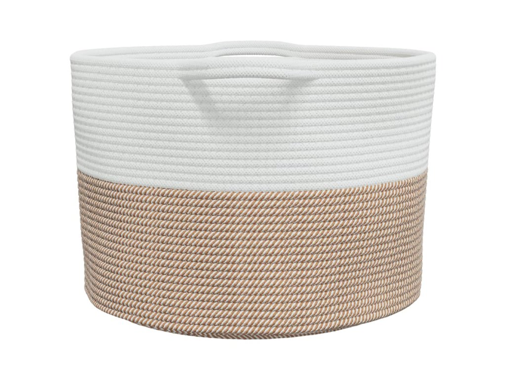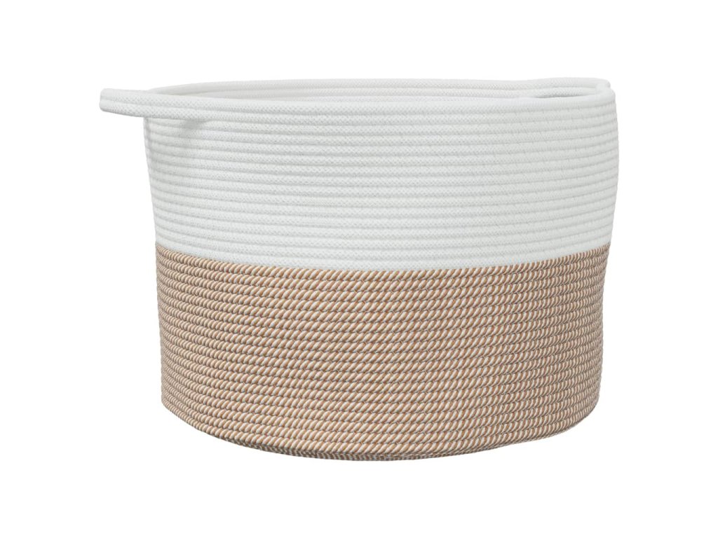 - Odolný materiál: Úložný koš je vyroben z tkaných bavlněných provazů, které vynikají svou prodyšností, měkkostí a výjimečnou odolností.