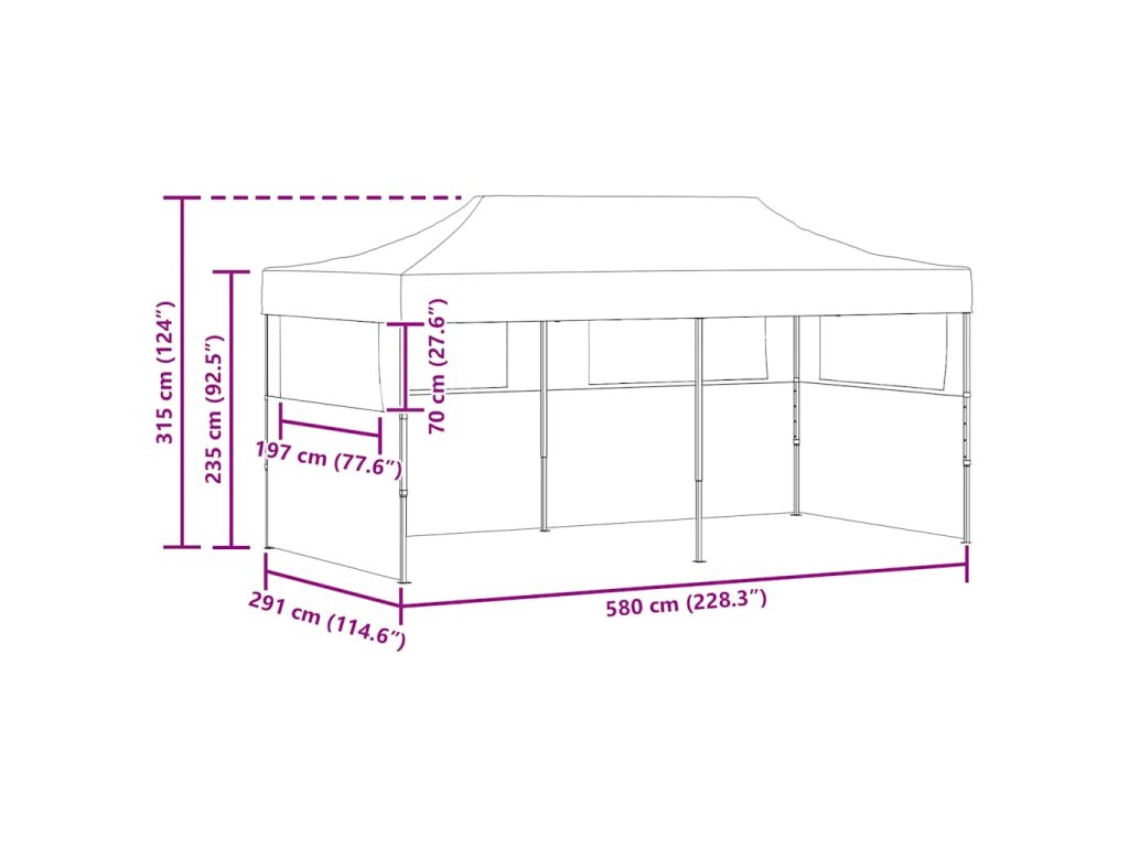 - Celkové rozměry: 580 x 291 x 315 cm (D x Š x V)