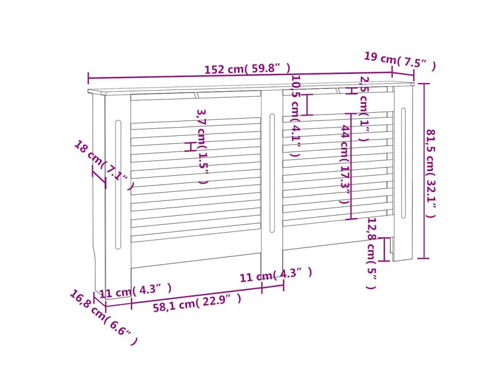 vidaXL Kryt na radiátor 152 x 19 x 81 cm MDF