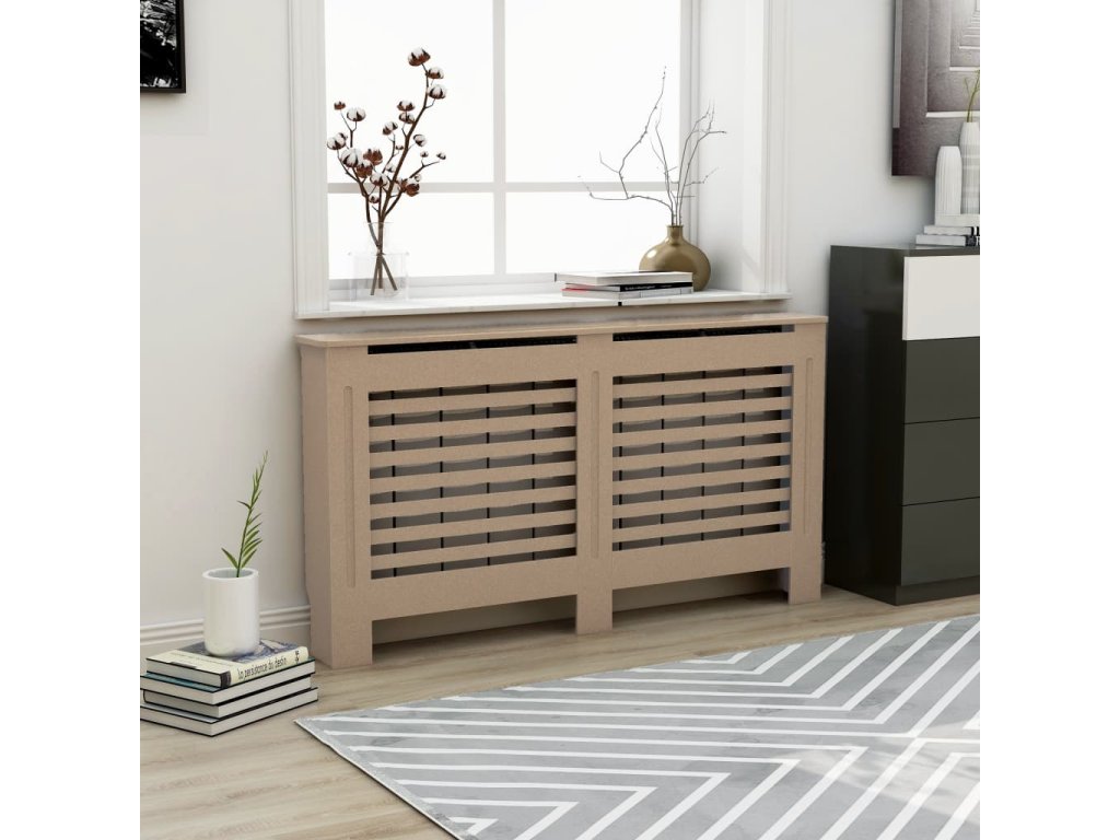 Robustní a odolný kryt na radiátor je vyrobený z MDF. Zaujme svým moderním laťkovým designem, který se hodí do každého interiéru.