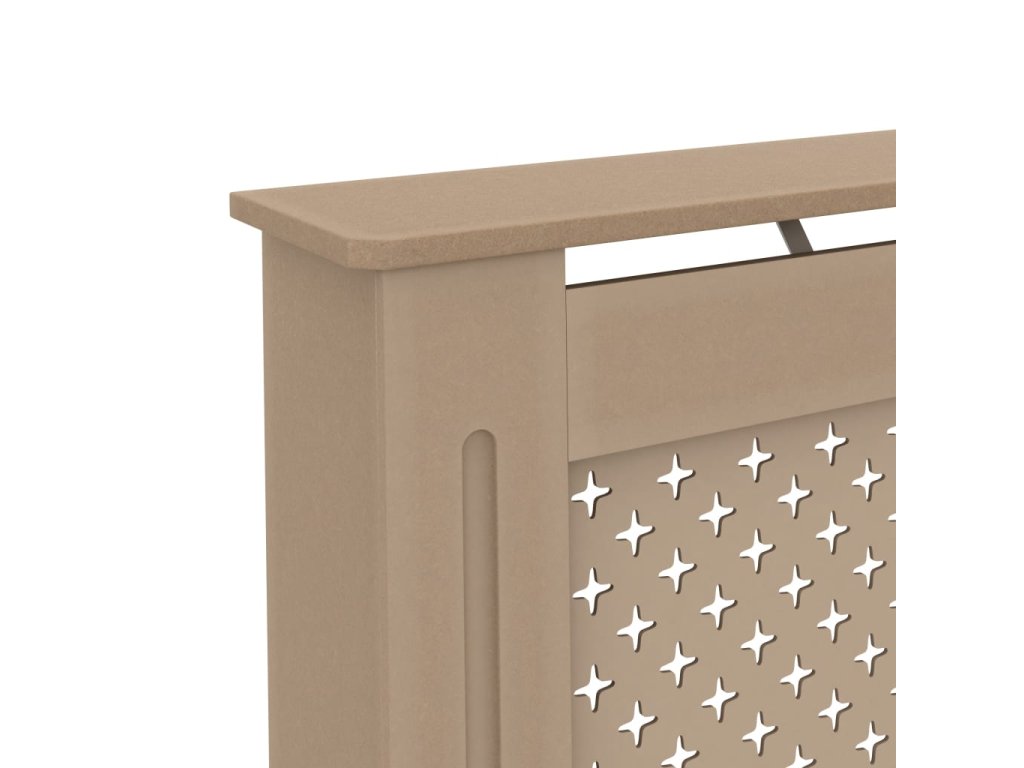 Tento kryt na radiátor představuje jak stylový, tak praktický doplněk do vašeho obývacího pokoje. Je navržen tak, aby dodal vašemu topení dekorativní charakter a zároveň vám poskytl více prostoru pro vaše zarámované fotografie, knihy, ozdoby apod.