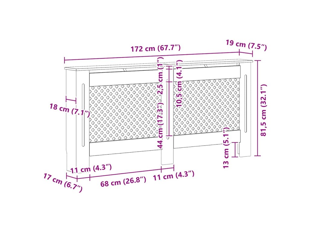 vidaXL Kryt na radiátor 172 x 19 x 81 cm MDF