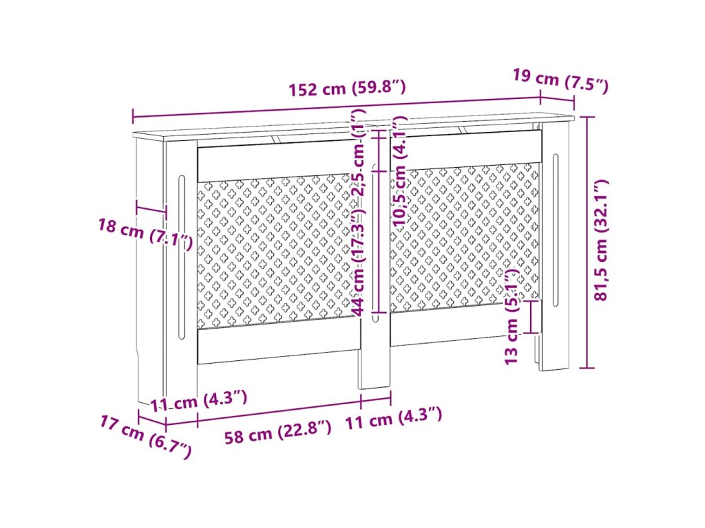 Tento kryt na radiátor představuje jak stylový, tak praktický doplněk do vašeho obývacího pokoje. Je navržen tak, aby dodal vašemu topení dekorativní charakter a zároveň vám poskytl více prostoru pro vaše zarámované fotografie, knihy, ozdoby apod.