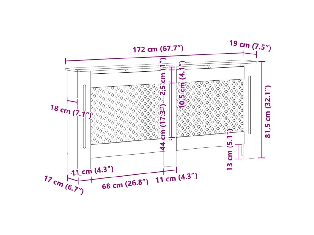 Tento kryt na radiátor představuje jak stylový, tak praktický doplněk do vašeho obývacího pokoje. Je navržen tak, aby dodal vašemu topení dekorativní charakter a zároveň vám poskytl více prostoru pro vaše zarámované fotografie, knihy, ozdoby apod.