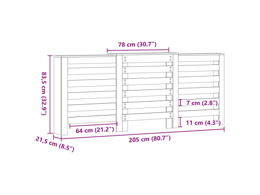 vidaXL Kryt na radiátor bílý 205 x 21,5 x 83,5 cm kompozitní dřevo