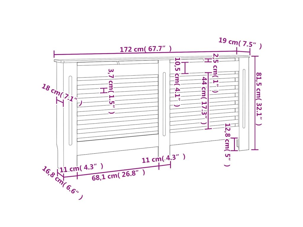 Tento kryt na radiátor představuje jak stylový, tak praktický doplněk do vašeho obývacího pokoje. Je navržen tak, aby dodal vašemu topení dekorativní charakter a zároveň vám poskytl více prostoru pro vaše zarámované fotografie, knihy, ozdoby apod.