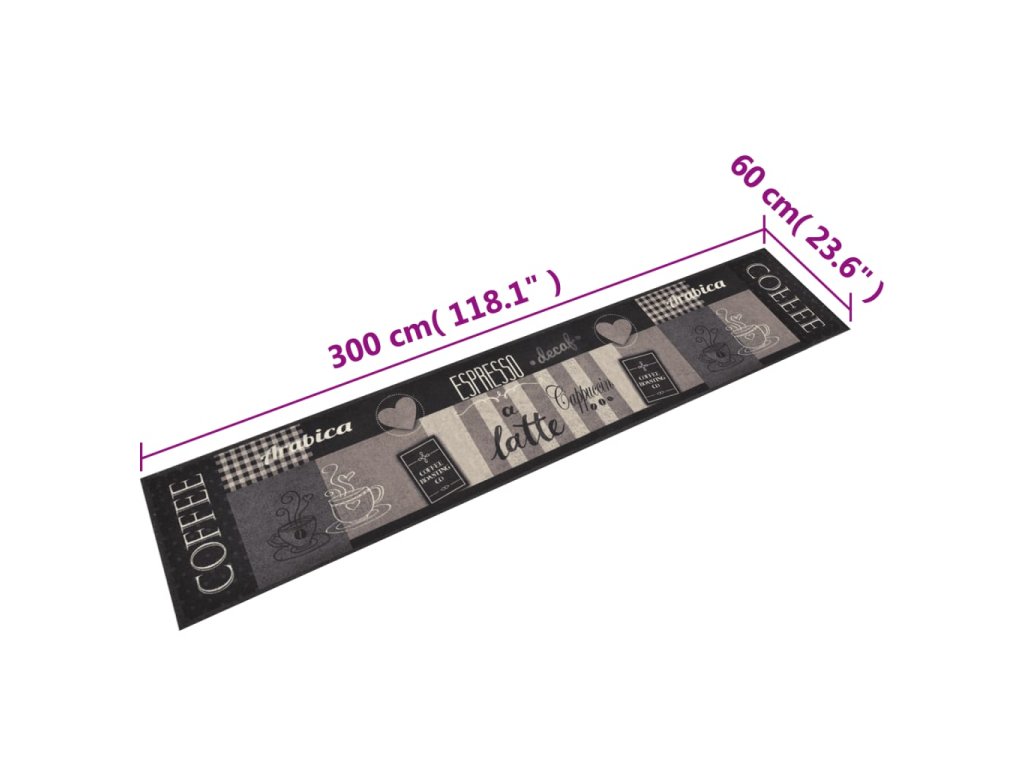 vidaXL Kuchyňský koberec omyvatelný Káva černý 60 x 300 cm samet