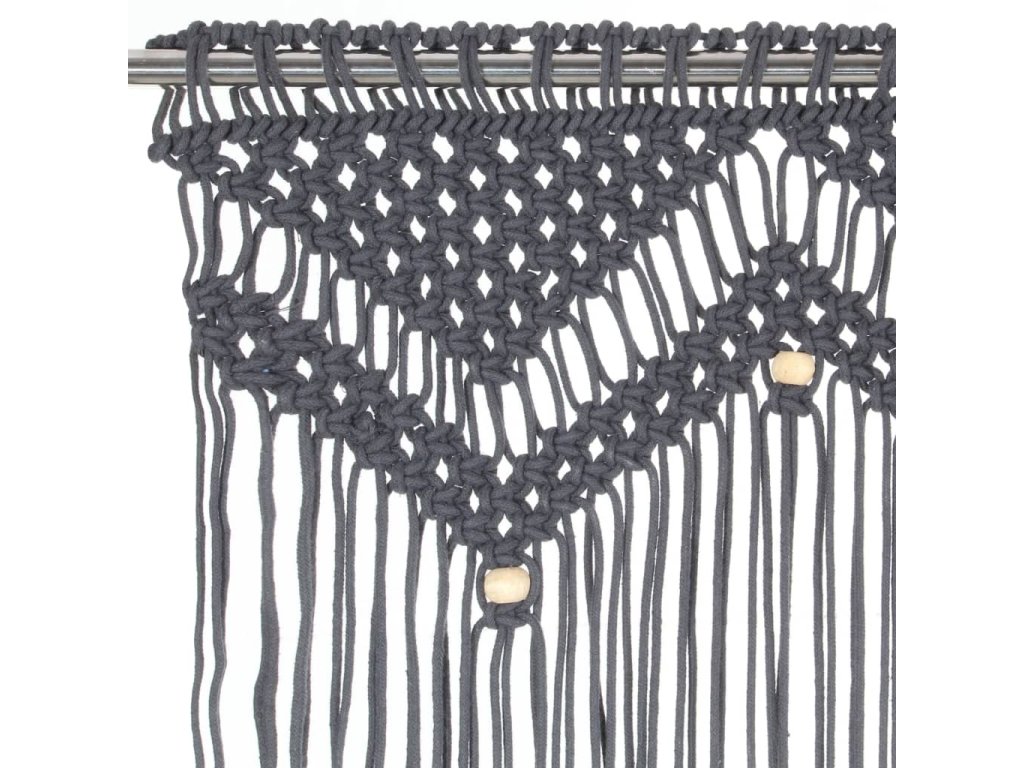 Náš praktický provázkový závěs s macramé představuje skvělý způsob, jak si zkrášlit interiér. Uplatnit ho můžete jako závěs do dveří nebo na okno, jako předěl pokoje či jako pozadí do výlohy.