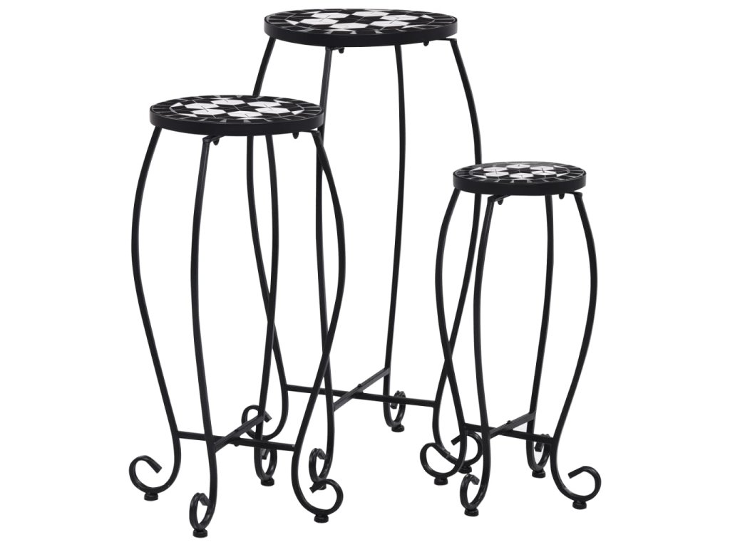 vidaXL Mozaikové stolky 3 ks černé a bílé keramika