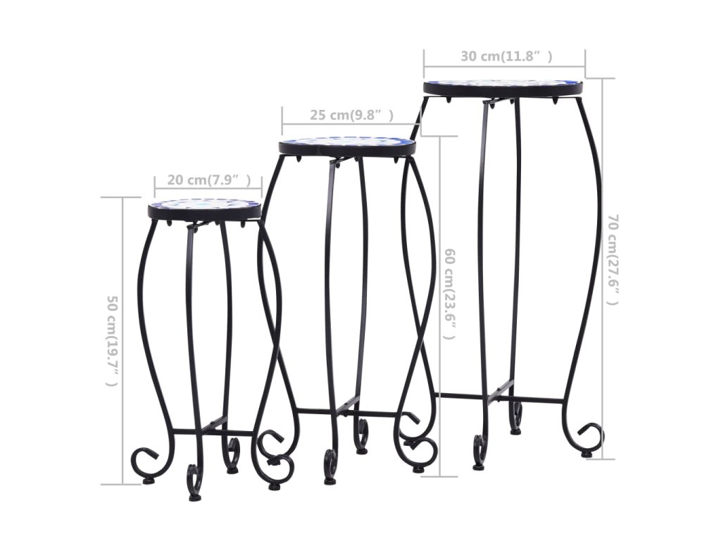vidaXL Mozaikové stolky 3 ks modré a bílé keramika