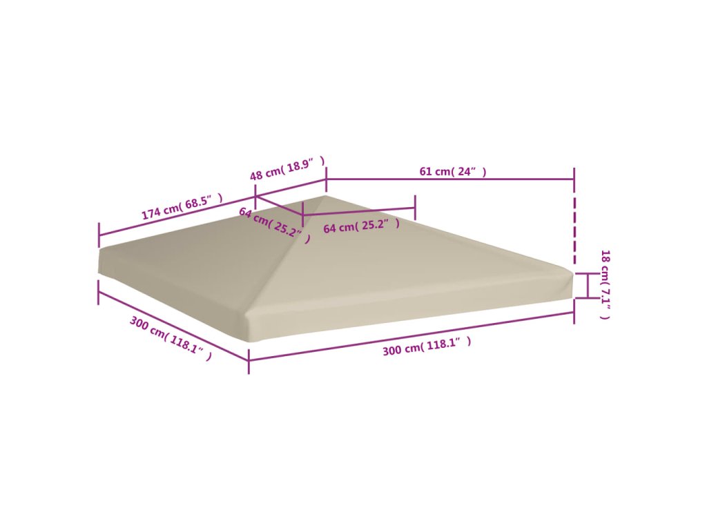 Naše náhradní střecha pro altány je vyrobená z odolného polyesteru s PVC povlakem, stříška je tudíž vodovzdorná. Tato střecha vás ochrání před sluncem, lehkým deštěm a dalšími povětrnostními vlivy. Navíc má vyztužené rohy pro větší stabilitu a odolnost.