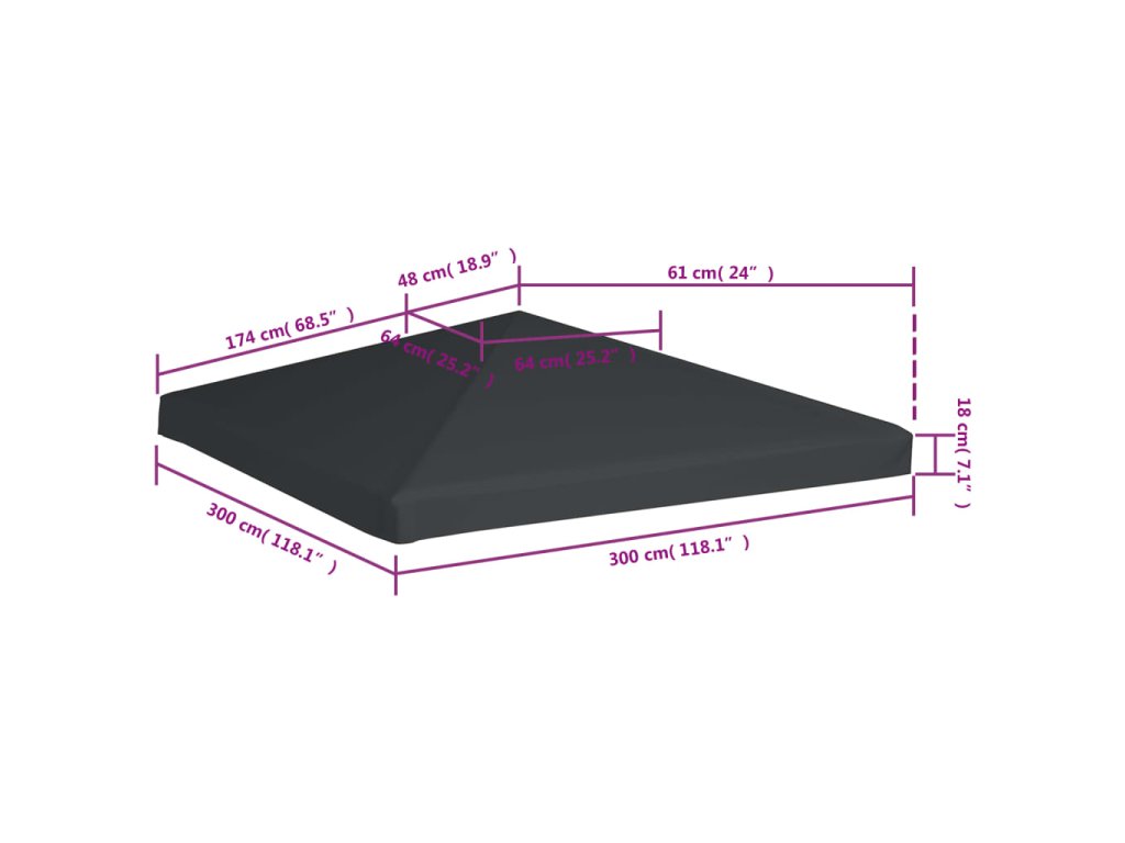 vidaXL Náhradní střecha na altán 310 g/m2 3x3 m šedá