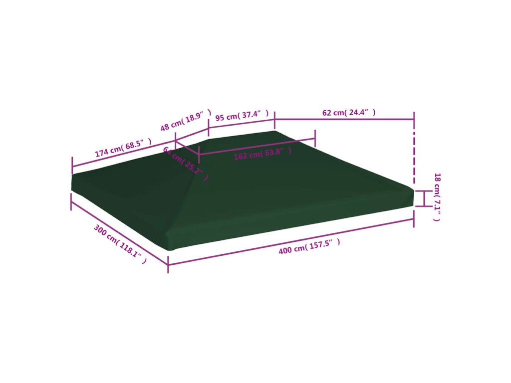 vidaXL Náhradní střecha na altán 310 g/m2 4 x 3 m zelená