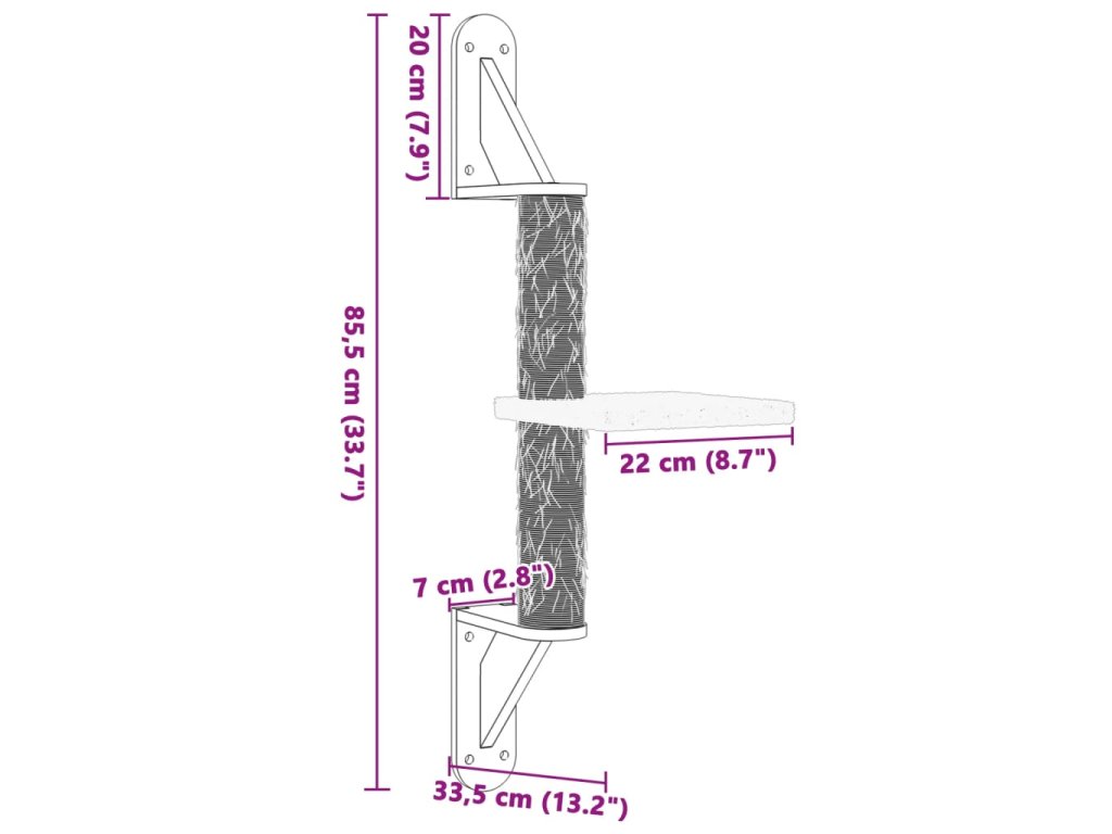 vidaXL Nástěnné škrabadlo pro kočky se sloupkem světle šedé 85,5 cm