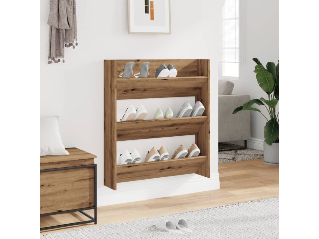 vidaXL Nástěnný botník dub artisan 80 x 18 x 90 cm kompozitní dřevo